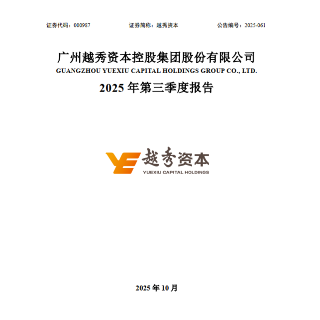 廣州越秀資本控股集團(tuán)股份有限公司 2025年三季度報告